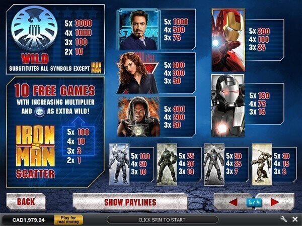 Iron Man 2 Pokie Paylines