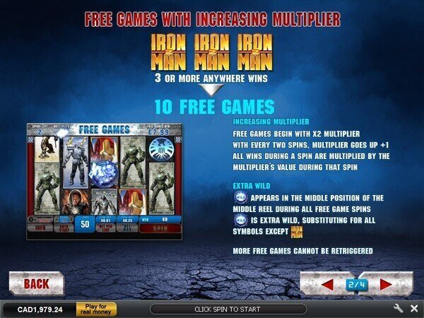 In addition to the progressives, players can also win with the wild symbol, which is the Iron Man 2 icon. This will stand in for all regular game symbols to help create winning combinations.