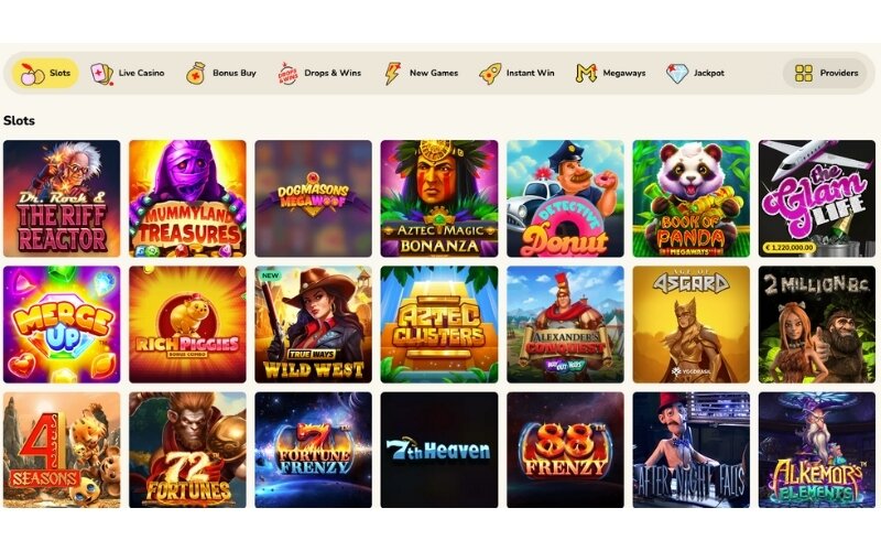 Pokie lovers will find a fantastic selection of games, with 7,000 titles available. Under “Slots”, the catalogue includes everything from classic 3-reel pokies to bonus buy, drops & wins, megaways, jackpots, and instant win with unique themes. Play games like Aztec Magic Deluxe, and Wild Tiger by BGaming, or Buffalo Hold and Win Extreme by Booming, or Pompeii Gold Rapid Link by NetGame. The chances to have fun are endless.