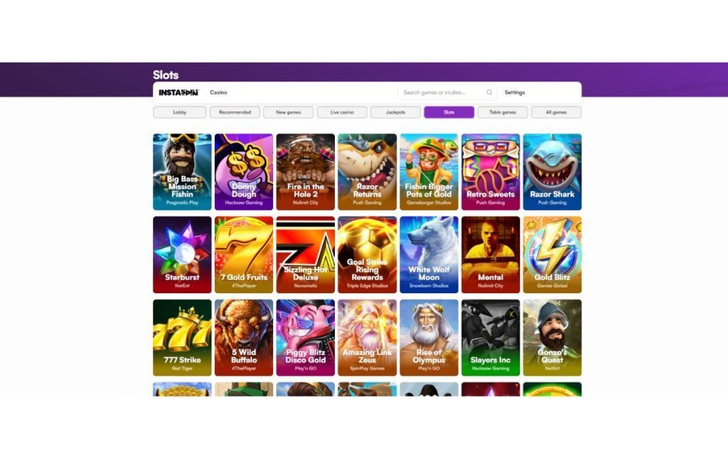 Instaspin’s interface makes exploring its games collection easy. You can filter games by provider, popularity, or specific features.